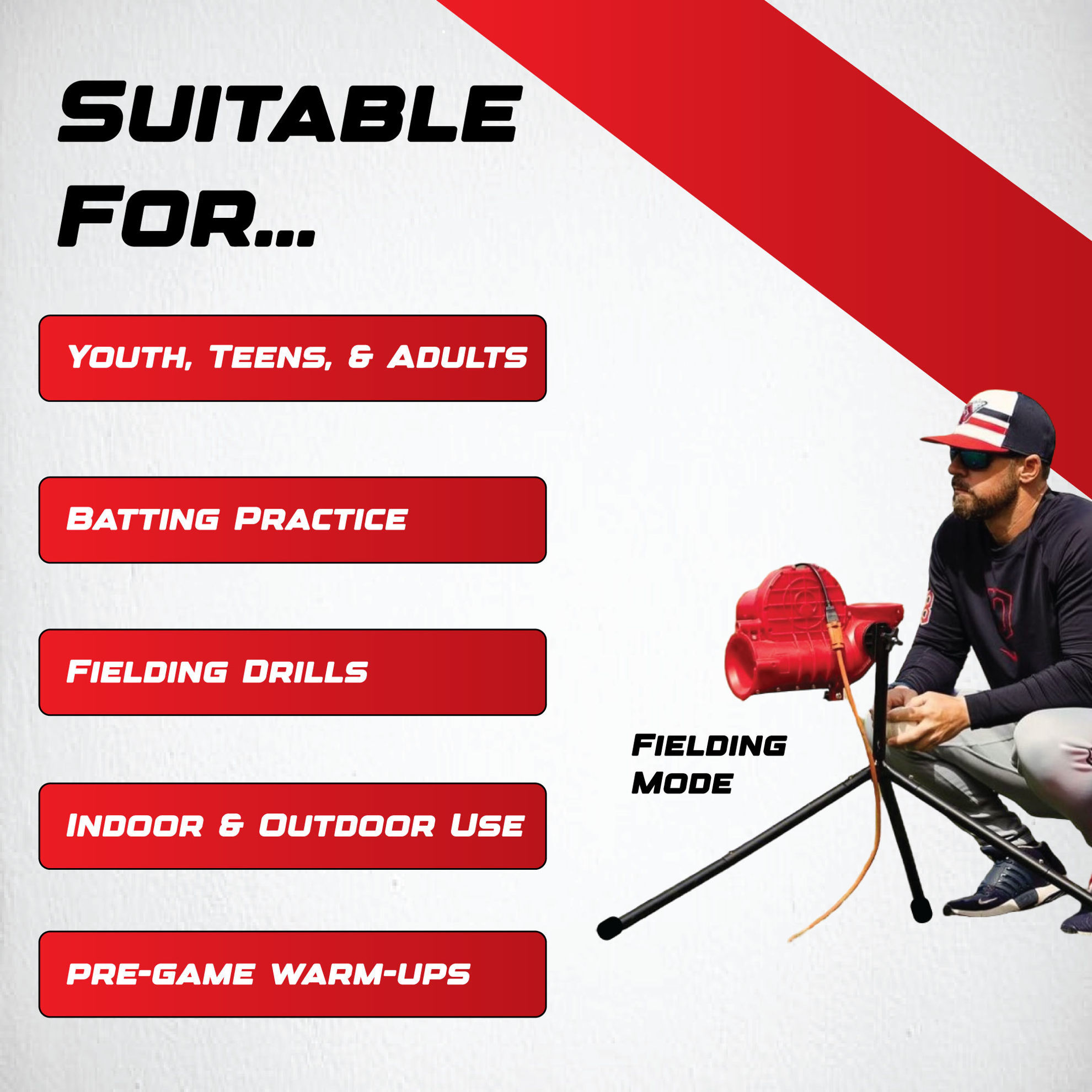 - Pitches lite-balls up to 60 MPH