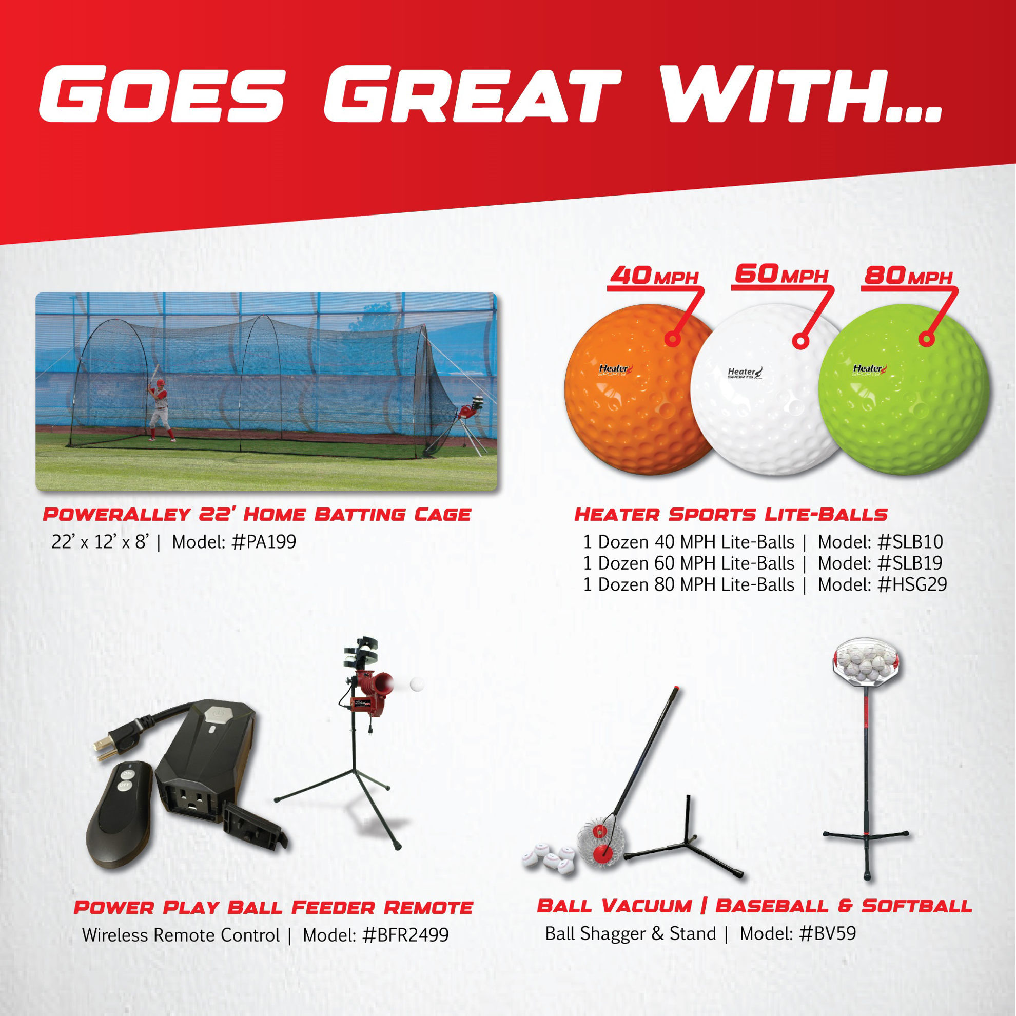 - 12 Ball Automatic Feeder pitches every 9 seconds (included)