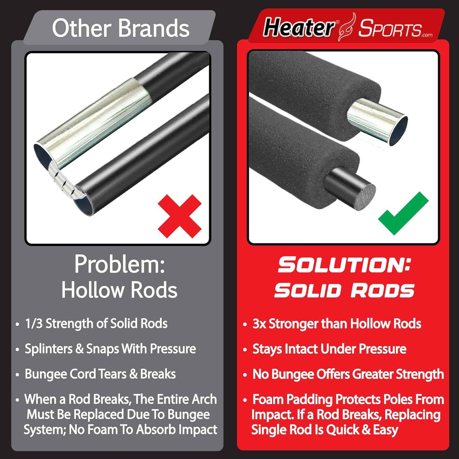 Amazing All-In-One Package Makes Set-Up A Breeze! The Xtender Batting Cage is the most revolutionary batting cage ever developed! Never before have you been able to purchase a complete batting cage and have it shipped directly to your door. The secret lies in the frame design and netting; First, the frame’s side supports are made of steel tubing to give the frame durability and maximum swinging area for the batter. Second, the middle arch of the frame is made of flexible fiberglass rod. This rod allows the cage to flex in the wind without bending or breaking. Third, the six power stakes are staked into the ground to give maximum frame support. Fourth, a rugged foam pad slides over each frame support to protect the frame from balls. Fifth, the extra strength catch net is made of 1 1/4” netting compared to 2” netting used on other cages. This smaller netting provides twice as much strength in the same amount of space. And because you can connect Xtender cages together, you can increase the length of your cage just by ordering another Xtender cage.